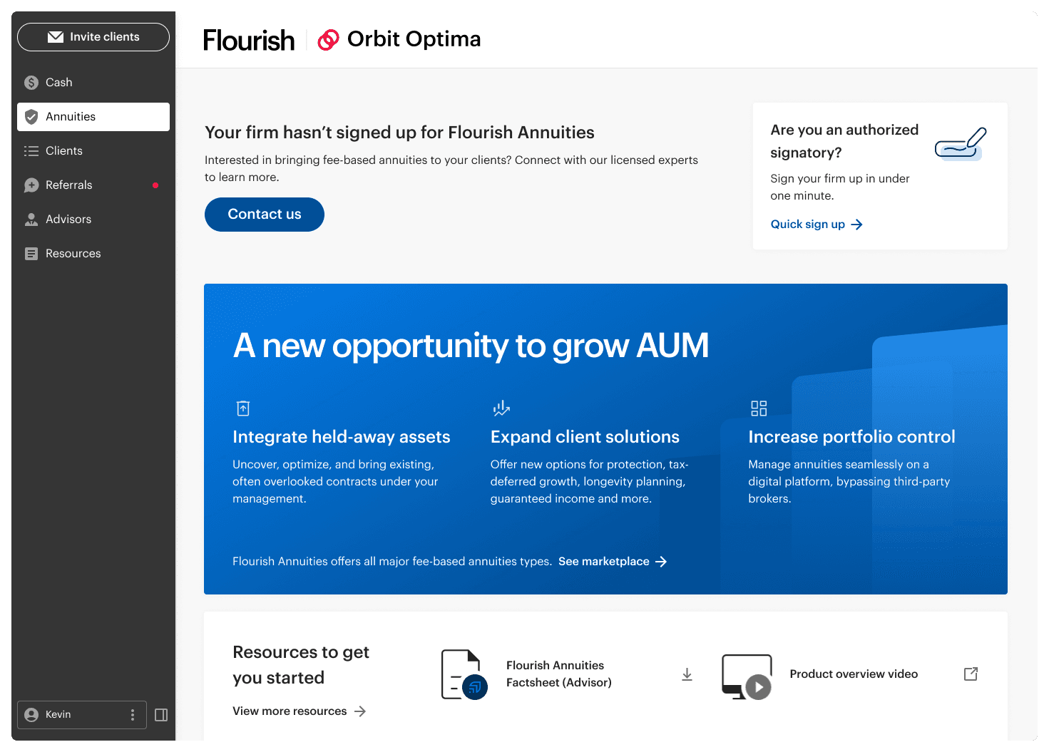 Previously, 'Annuities' tab was hidden for firms without access. I designed a new “not enabled” state that acts as a lightweight lead-gen page—educating advisors on the product, linking to our marketing site, and providing a direct contact path to request access.